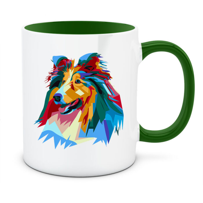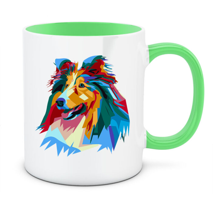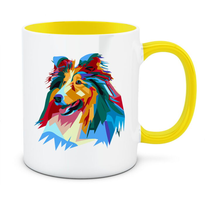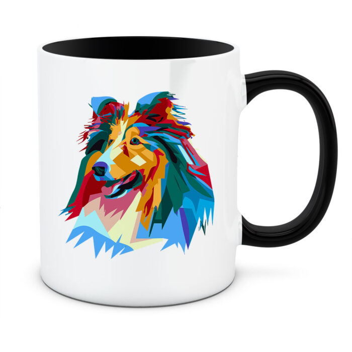Klasyczny kubek z nadrukiem psa rasy OWCZAREK SZKOCKI DŁUGOWŁOSY.