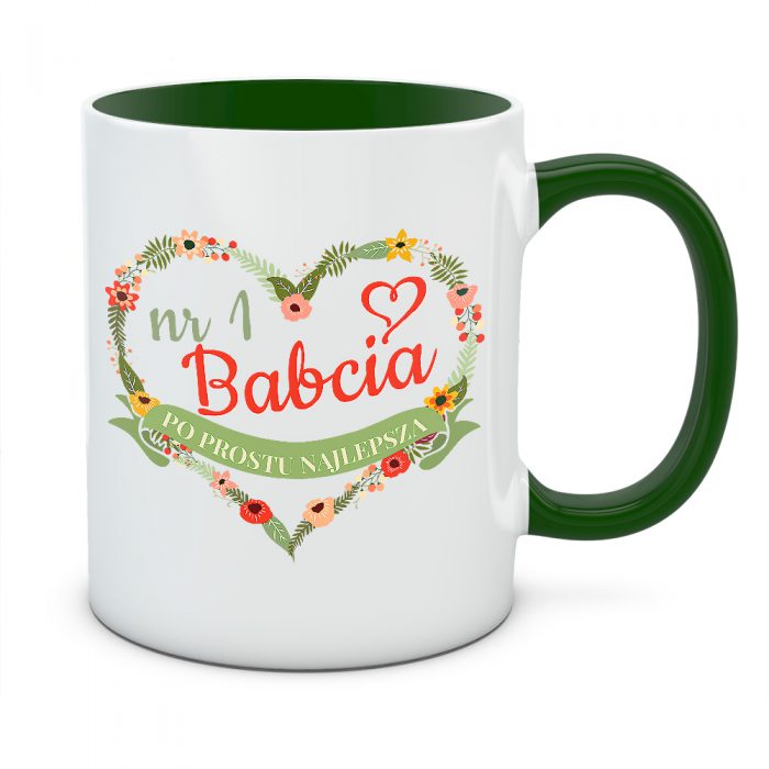 - Jasny przekaz: Napis „nr 1 Babcia po prostu najlepsza” umieszczony na zielonej wstędze to krótki komunikat, który poprawi jej humor przy każdej kawie czy herbacie.