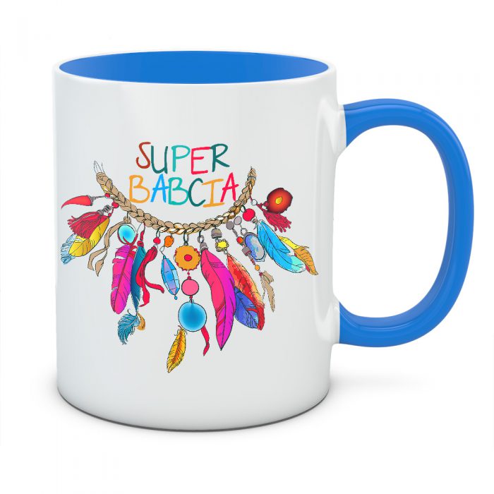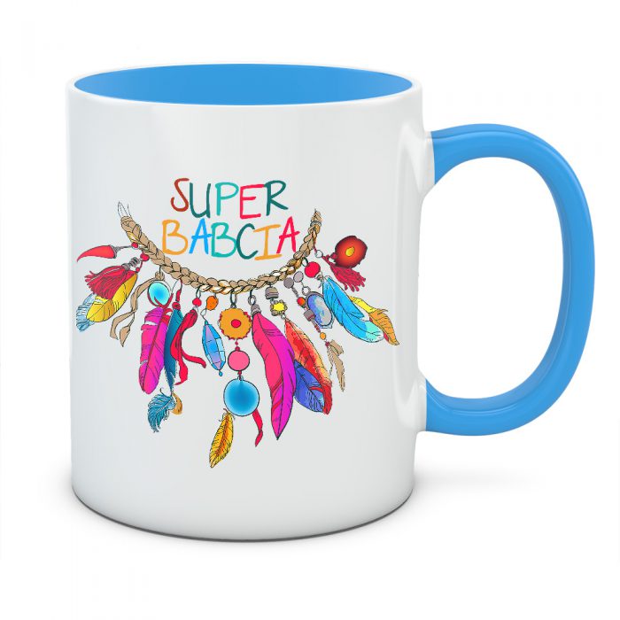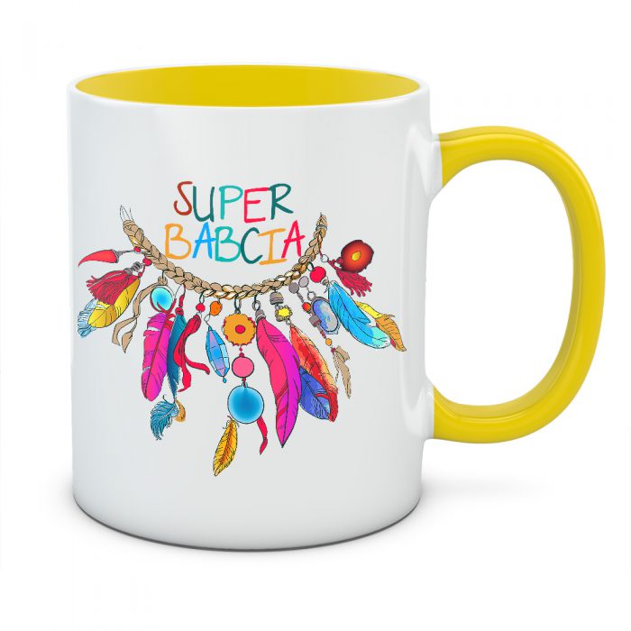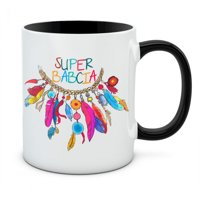 Szukasz prezentu dla babci, która ma w sobie mnóstwo pozytywnej energii i własny styl? Kubek „Super Babcia” w klimacie boho to strzał w dziesiątkę. Kolorowe piórka, koraliki i radosny, wielobarwny napis sprawiają, że to naczynie wygląda mega świeżo i od razu poprawia humor przy porannej kawie czy herbacie.