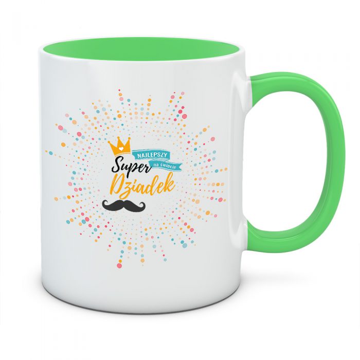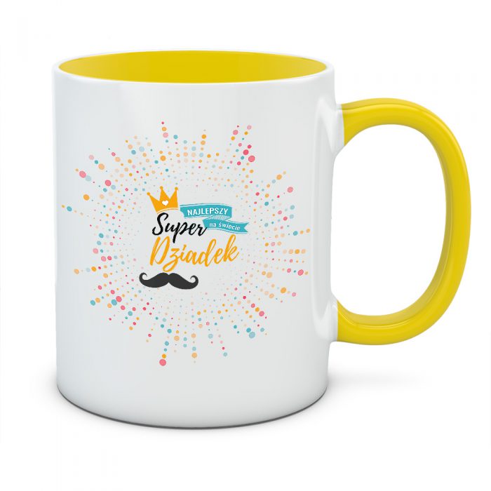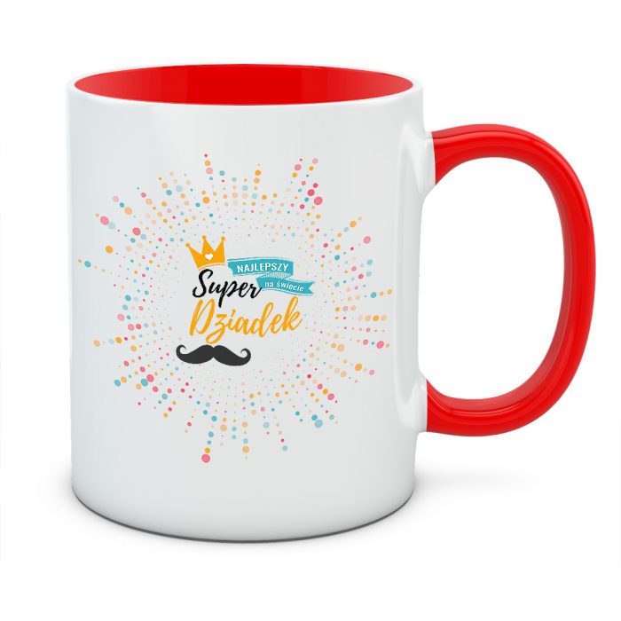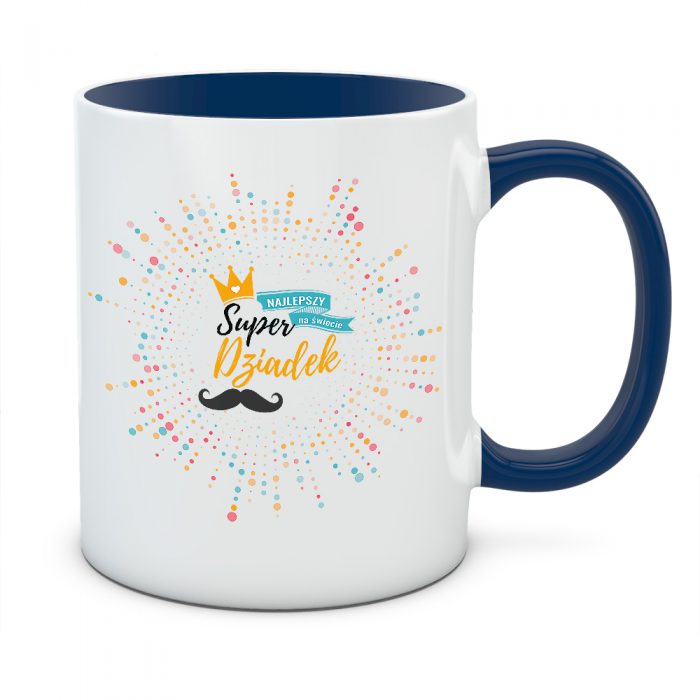 Życie z Twoim dziadkiem jest pełne barw i uśmiechu? Kubek „Super Dziadek” to prezent, który idealnie oddaje tę radosną atmosferę. Grafika przypominająca wybuch kolorowego konfetti lub fajerwerków wokół złotej korony sprawia, że ten kubek wygląda jak nieustające święto. To projekt dla człowieka, który ma w sobie mnóstwo pogody ducha i potrafi rozświetlić nawet najbardziej pochmurny dzień.