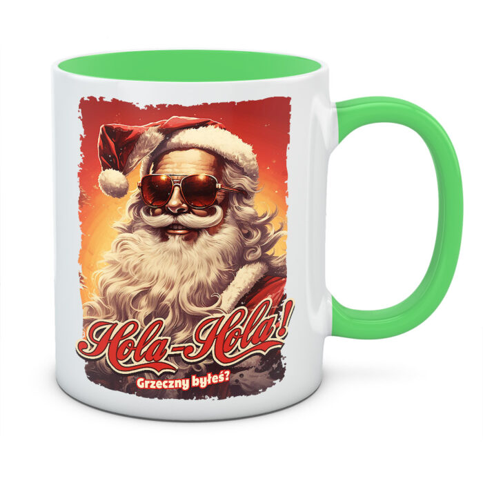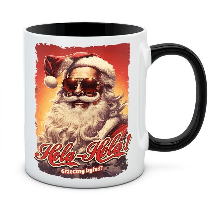 Chcesz niebanalny kubek na święta? Kubek niczym z Hollywood? Taki z fajnym, gwiazdorskim Mikołajem w okularach słonecznych? No pewnie. Po co Ci kubek z kolejnym bałwanem czy reniferem. Lepszy z mikołajem w stylu filmowego gwiazdora, który zadaje podstawowe pytanie: ,,Grzeczny byłeś?’’