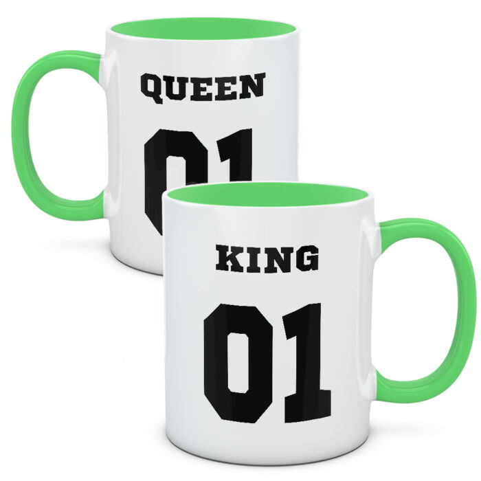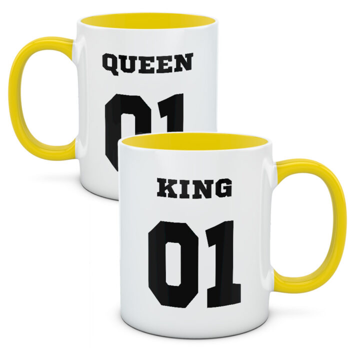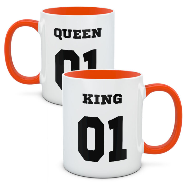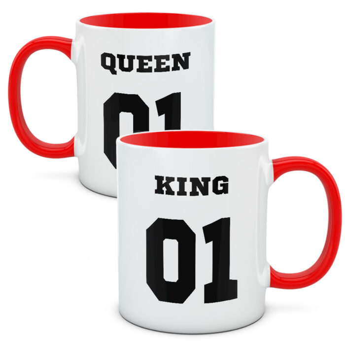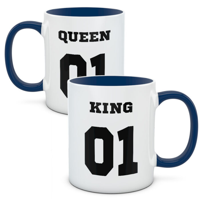 Duże symbole numeryczne i napis Queen oraz King. Kubki dla odważnych i chętnych na nowe wyzwania par. Par, które lubią czuć się po królewsku i po królewsku spędzać czas. Lubią dobre jedzenie i bąbelkowe napoje.