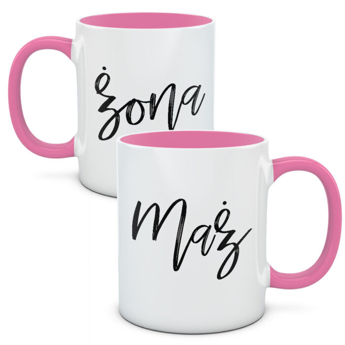 Kubki mogą być całe białe lub mieć kolorowe ucho i wnętrze. Możecie dowolnie mieszać kolory np. różowy kubek dla niej i czarny dla niego. Albo jeden kubek biały a drugi kolorowy.