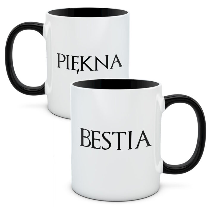 Klasyczne kubki. Prosty napis. Nawiązuje do słynnej, francuskiej bajki ludowej, w której piękny książę z powodu niegodnego trybu życia zostaje zmieniony w bestię przez mądrą czarownicę. Czar pryśnie jeśli spotka prawdziwą miłość. A Ty już taką prawdziwą miłość spotkałeś? Jeśli tak, to koniecznie zaopatrz się w zestaw kubków Piękna i Bestia 2.