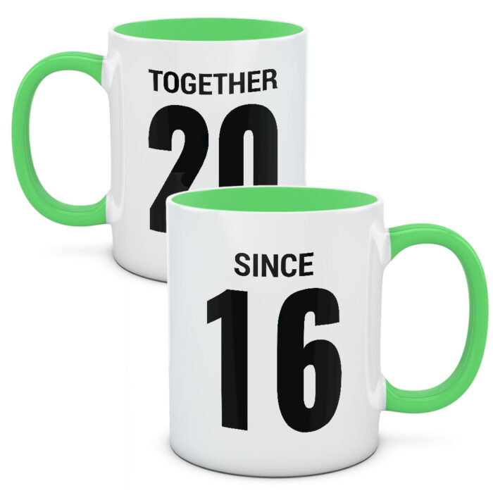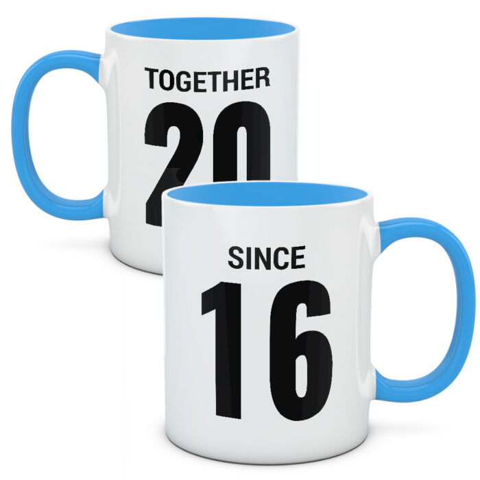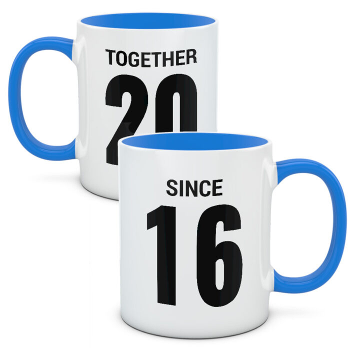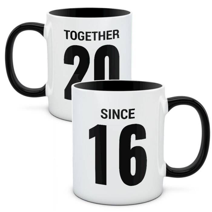 Kubki z rokiem, w którym się poznaliście. Zrobione specjalnie dla Was, abyście cieszyli się wspólnym czasem. Wspólnymi chwilami, jakie razem przeżyliście. To wersja w języku angielskim: together (razem) oraz since (od) – dla tych którzy wolą, żeby nie wszyscy zrozumieli znaczenie 🙂