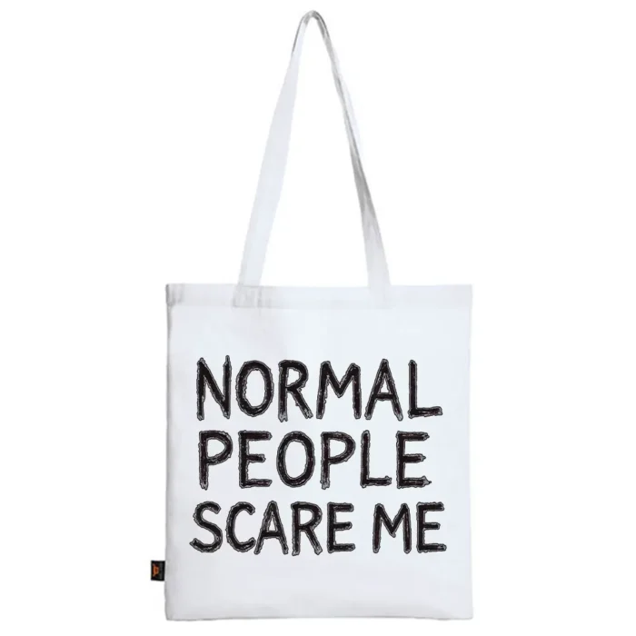 Torba bawełniana z grafiką Andrzeja Warty „NORMAL PEOPLE SCARE ME” to typograficzny statement z nutą mrocznego humoru. W centrum wybrzmiewa hasło „NORMAL PEOPLE SCARE ME” zapisane nieregularnym, ręcznie rysowanym liternictwem, które celowo „zgrzyta” i przyciąga wzrok. Piętrowy układ słów, mocny kontur i „powietrze” wokół liter dają plakatową czytelność na dużym formacie torby. Prosty kontrast czerni z jasnymi polami wzmacnia przekaz, a subtelne przetarcia i delikatne „szumy” dodają lekko grunge’owego charakteru. Z daleka działa jak krótki, prowokacyjny komunikat; z bliska widać smaczki linii i rytm liter, które nadają ilustracji autentyczności. Torba bawełniana z grafiką Andrzeja Warty „NORMAL PEOPLE SCARE ME” to wybór dla tych, którzy chcą powiedzieć „jestem inny” prosto, głośno i z autoironią — w mieście, na koncert i na co dzień.