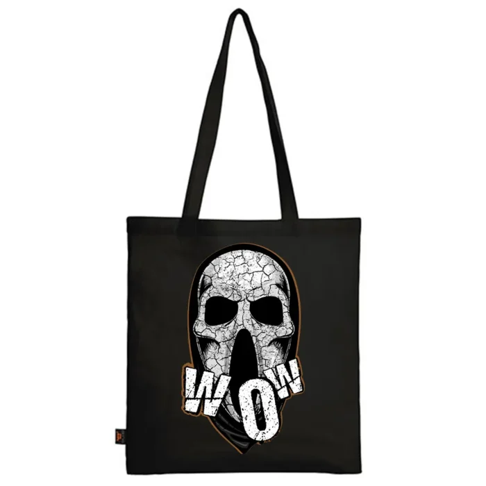 To shopperka z czaszką „Wow Skull”, idealna na uczelnię, do pracy i na koncert — lekka, a jednocześnie pełna charakteru.