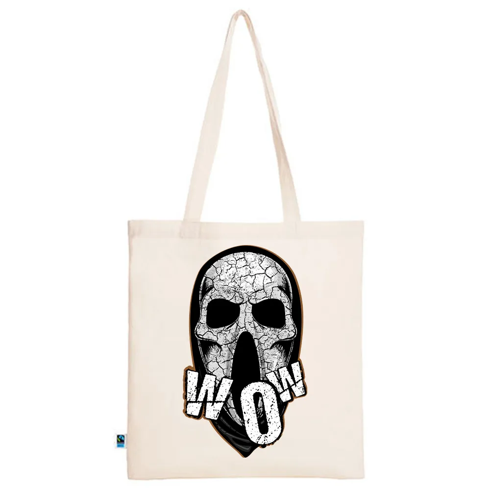 Torba „Wow Skull” to miejski pazur na co dzień — torba bawełniana z nadrukiem czaszki, która przyciąga spojrzenia od pierwszego kroku.