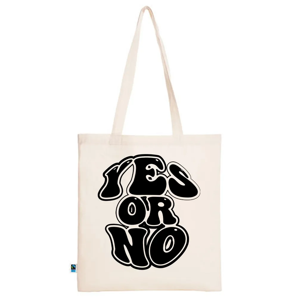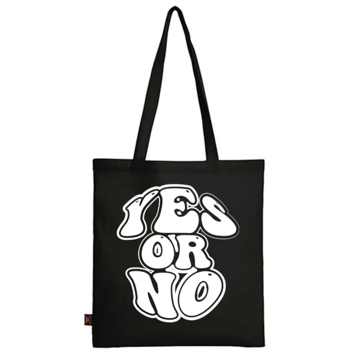Torba „Yes or No” to miejski minimalizm, który stawia sprawę jasno — torba bawełniana z napisem „Yes or No” do noszenia na co dzień.