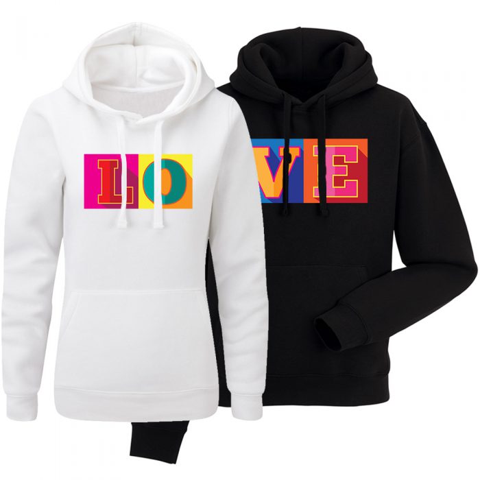 Dlatego już dziś zamówcie zestaw bluz z kapturem dla par LOVE 02, aby w piękny sposób pokazać Waszą kolorową miłość.