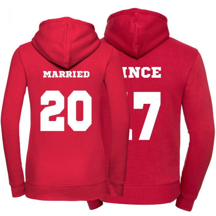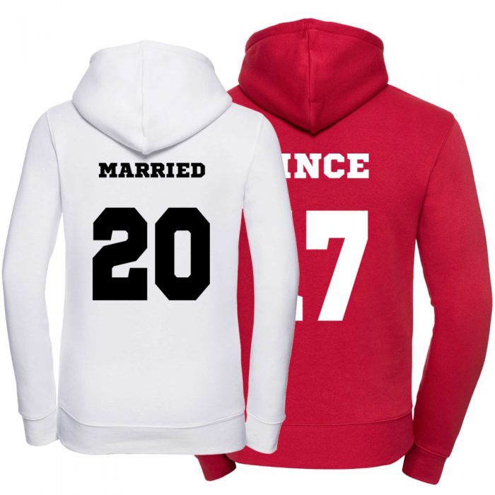 Dlatego zamówicie już dziś zestaw bluz z kapturem dla par MARRIED SINCE i zawsze bądźcie na bieżąco z rokiem, w którym wzięliście ślub.