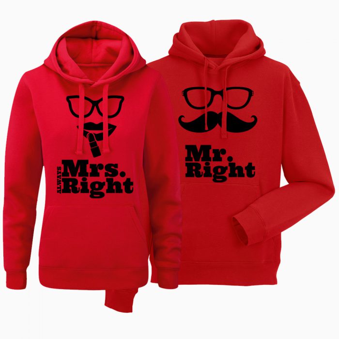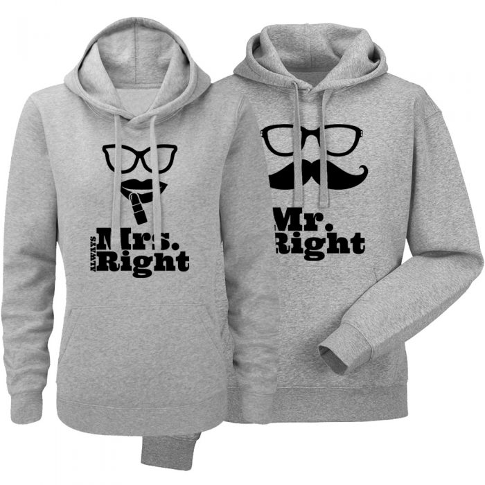 Też tak macie? Też się przekomarzacie, żeby udowodnić swoje zdanie? Sprawia Wam to frajdę, daje poczucie wspólnoty i bliskości? Zapewne tak. W związku z tym bluzy z napisem Mrs always Right i Mr Right okraszone dodatkowo symbolami charakterystycznymi dla kobiety i mężczyzny świetnie się do Was wpasują. Z humorem ukażą Waszą relację.