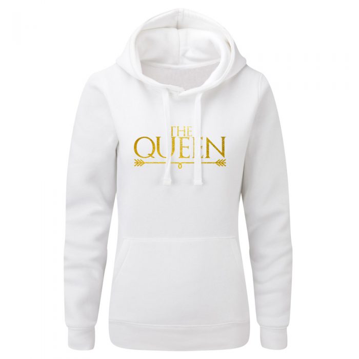 Jeśli chcecie podkreślić, że jesteście razem i dodać temu trochę błysku i elegancji to koniecznie sprawcie sobie zestaw bluz z kapturem dla par Queen King 02. To propozycja dla par odważnych, z królewskimi aspiracjami. Mających w sobie dużo ambicji i dobrego smaku. Chcących błyszczeć w towarzystwie swoim i innych.