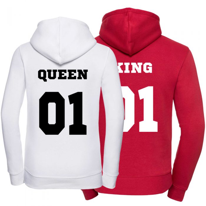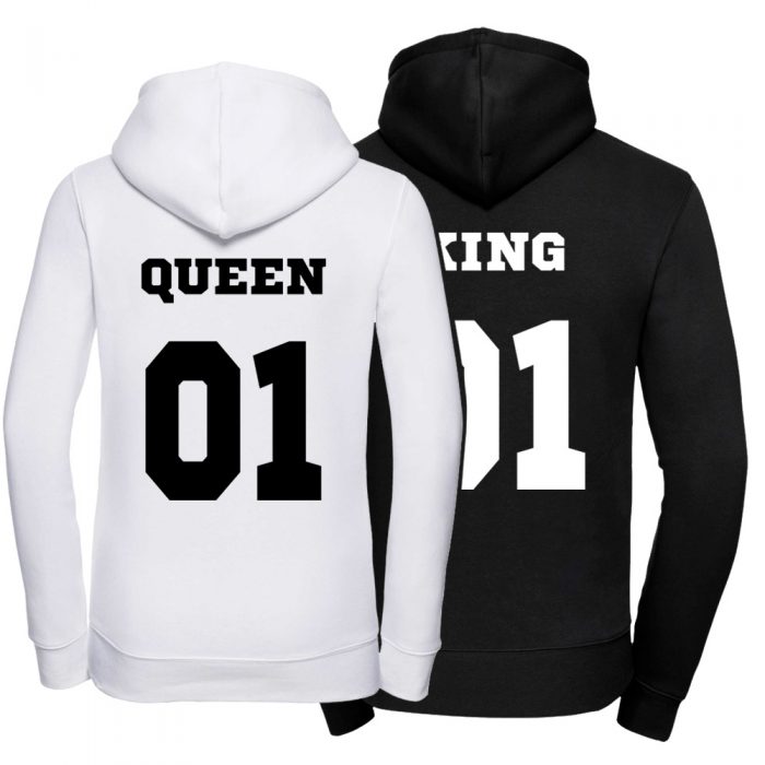 Dlatego zamówcie już dziś zestaw bluz z kapturem Queen-King 01, aby przy każdej okazji pokazywać ubiorem, jak ważni dla siebie jesteście.