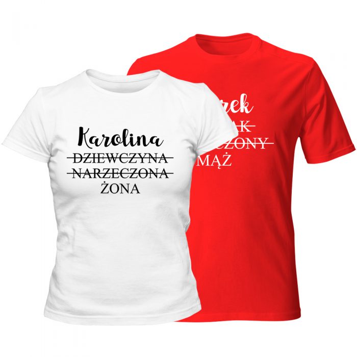 Bycie małżeństwem to wejście na zupełnie nowy poziom wspólnej przygody, który warto uczcić w luźnym stylu. Ten klasyczny zestaw koszulek z elementem personalizacji (imiona małżonków) Żona i Mąż pozwoli Wam z dumą ogłosić światu, że oficjalnie tworzycie jedną drużynę.